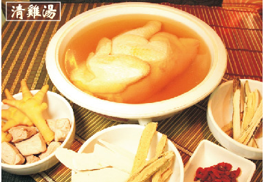 湯料:淮山,杞子,北蓍,黨參,瘦肉粒,雞腳及金華火腿 |